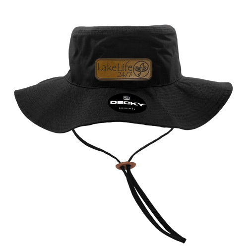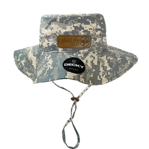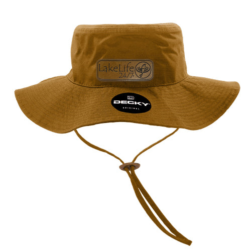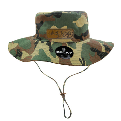 Our LakeLife® Boonie Hat is adorned with our LakeLife 24/7® logo in a brown leather patch. This hat is a soft, unconstructed ripstop cap featuring a long floppy visor and a drawstring for the perfect fit. This boonie hat is perfect for outdoor activities.